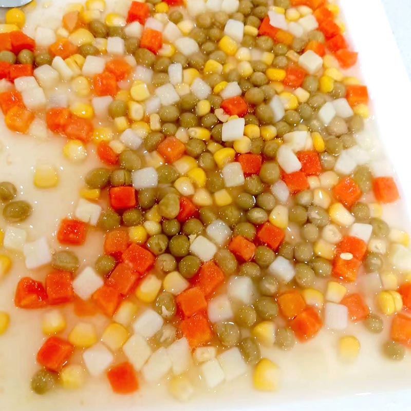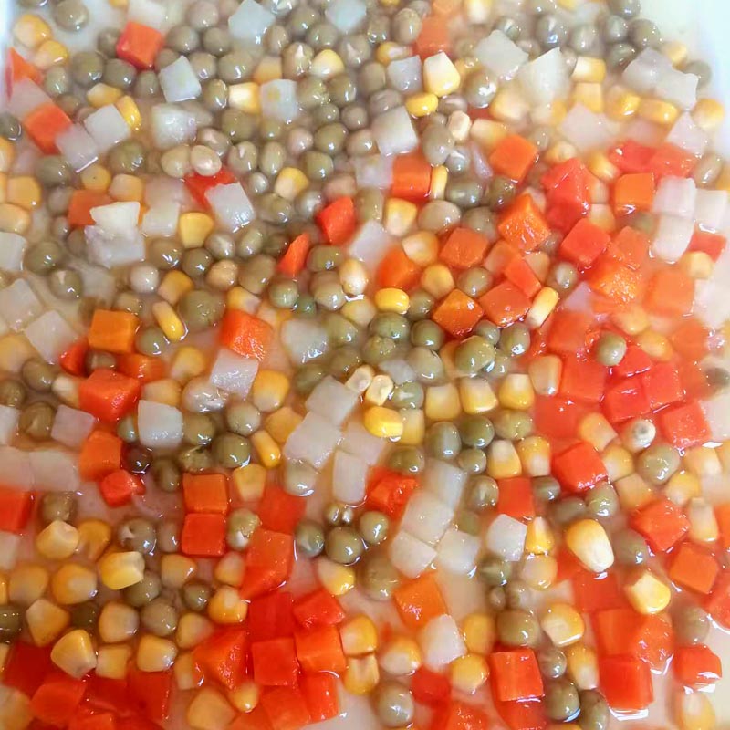 | مكونات | بازلاء خضراء، جزر، حبوب ذرة حلوة، بطاطس، فاصوليا خضراء، إلخ (قابلة للتخصيص) |